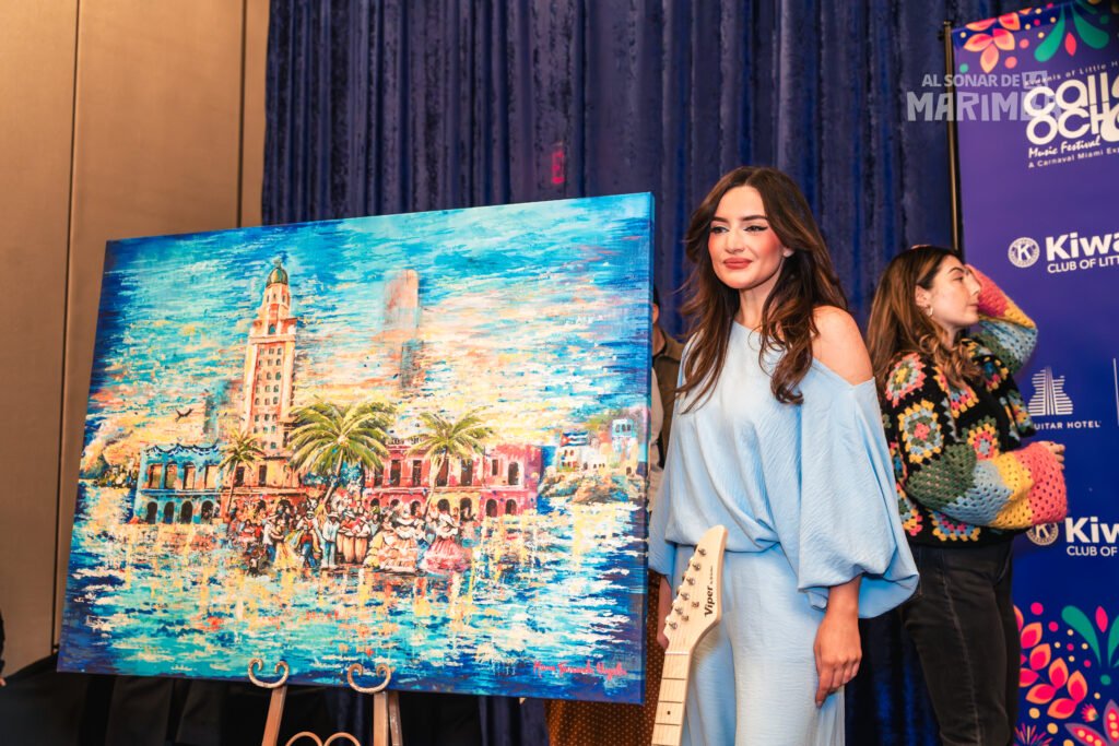 La obra elegida, titulada “Llegamos Bailando”, captura el espíritu vibrante del Carnaval: arquitectura icónica, palmeras, música, baile y una comunidad que se reconoce en la celebración.